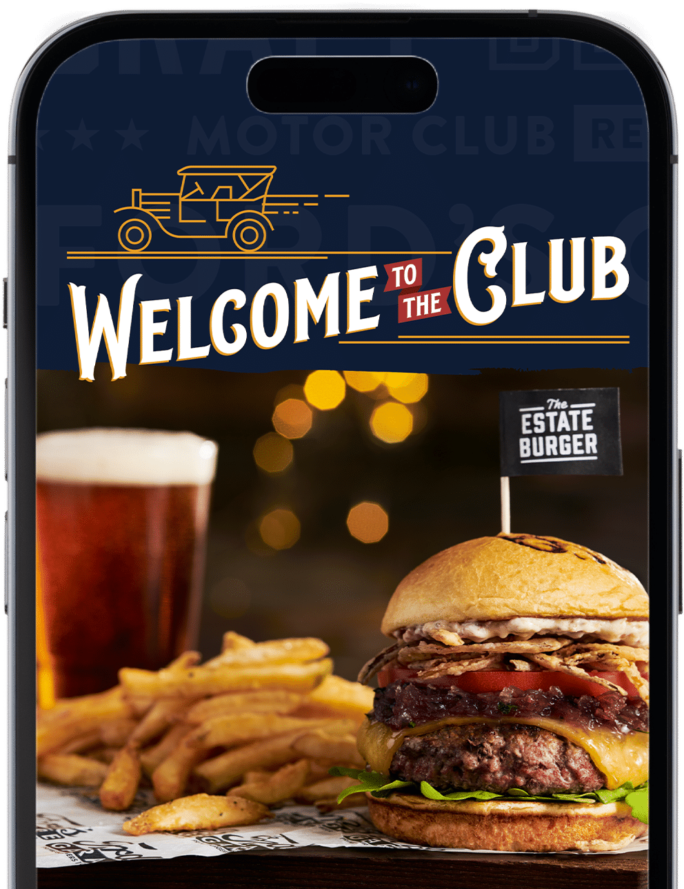 The new MotorClub program makes it easier to earn, manage, and redeem rewards. Now you can track your visits three ways: with the Ford’s Garage mobile app, on the MotorClub website, and through your restaurant server. With our new app, access to Ford’s Garage is always at your fingertips!